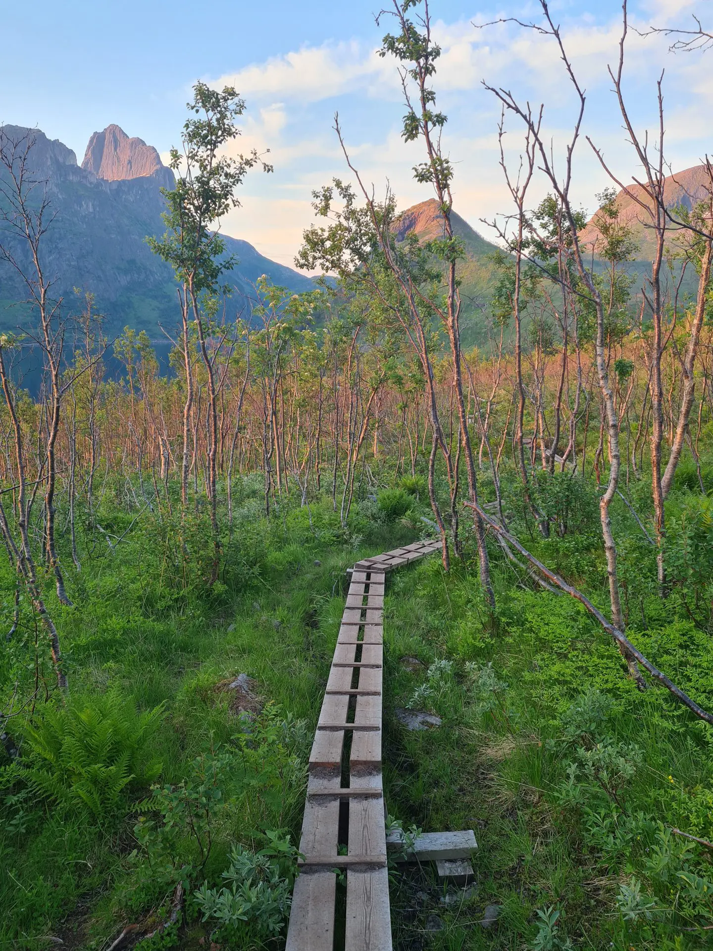L'ascension d'Hesten présente une montée soutenue d'environ 2 km pour un dénivelé de 500 mètres, ce qui rend l'effort physique notable malgré la distance relativement courte. Le sentier est bien balisé et très fréquenté, éliminant tout risque d'égarement.