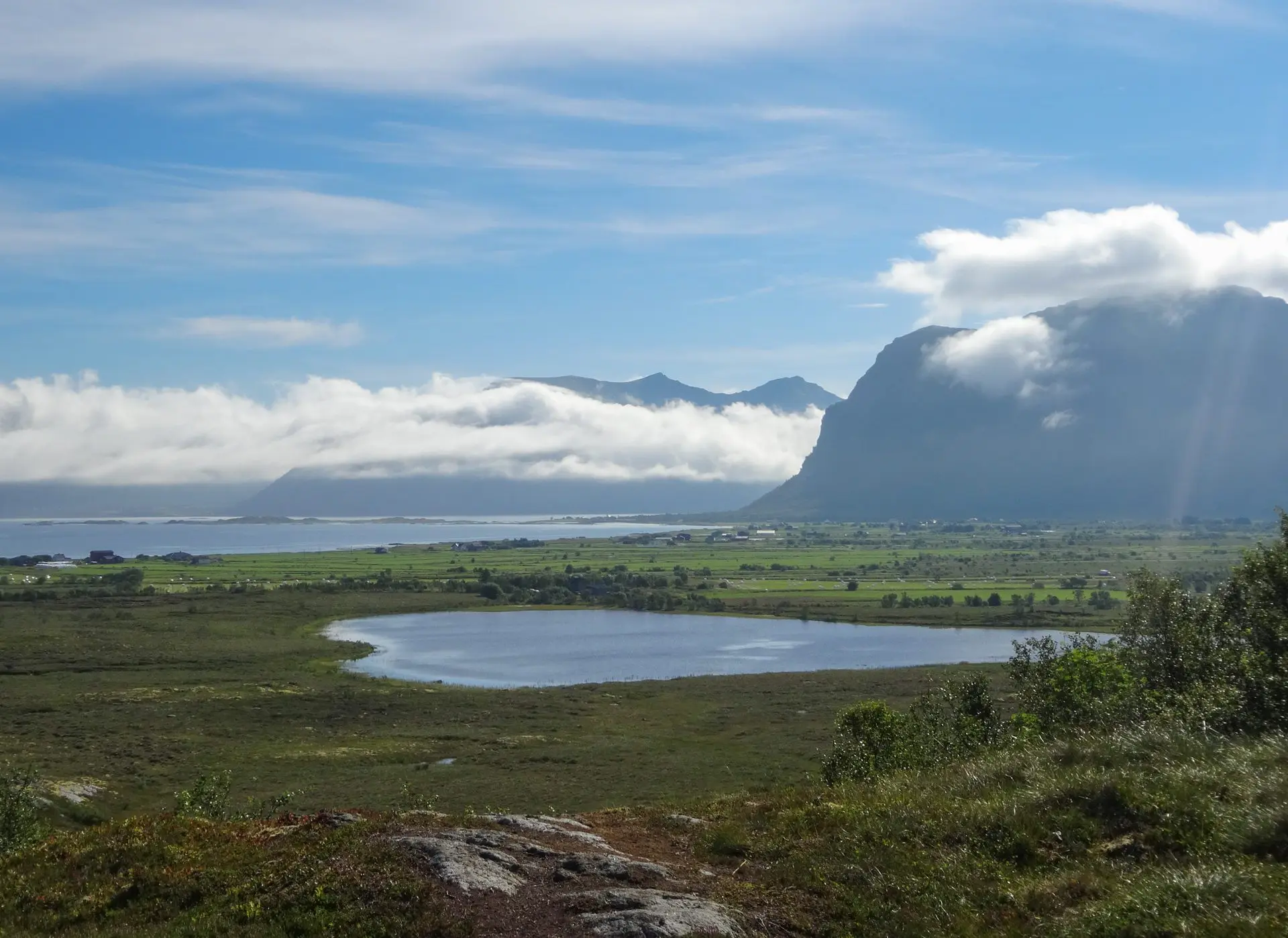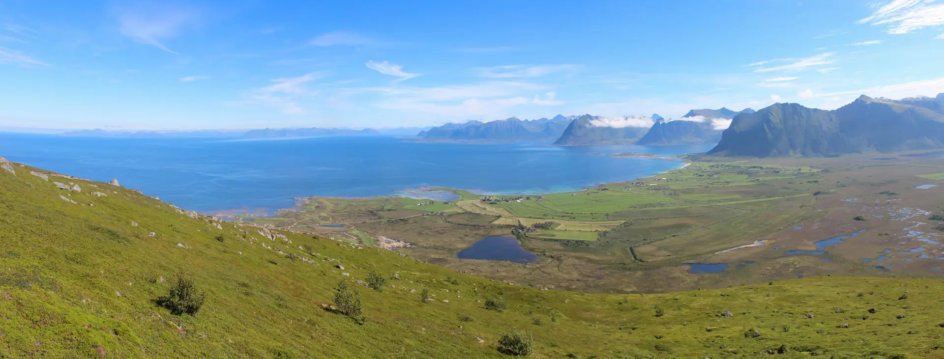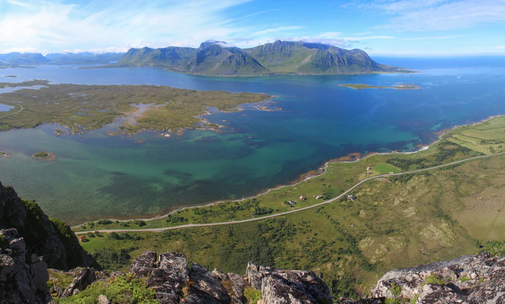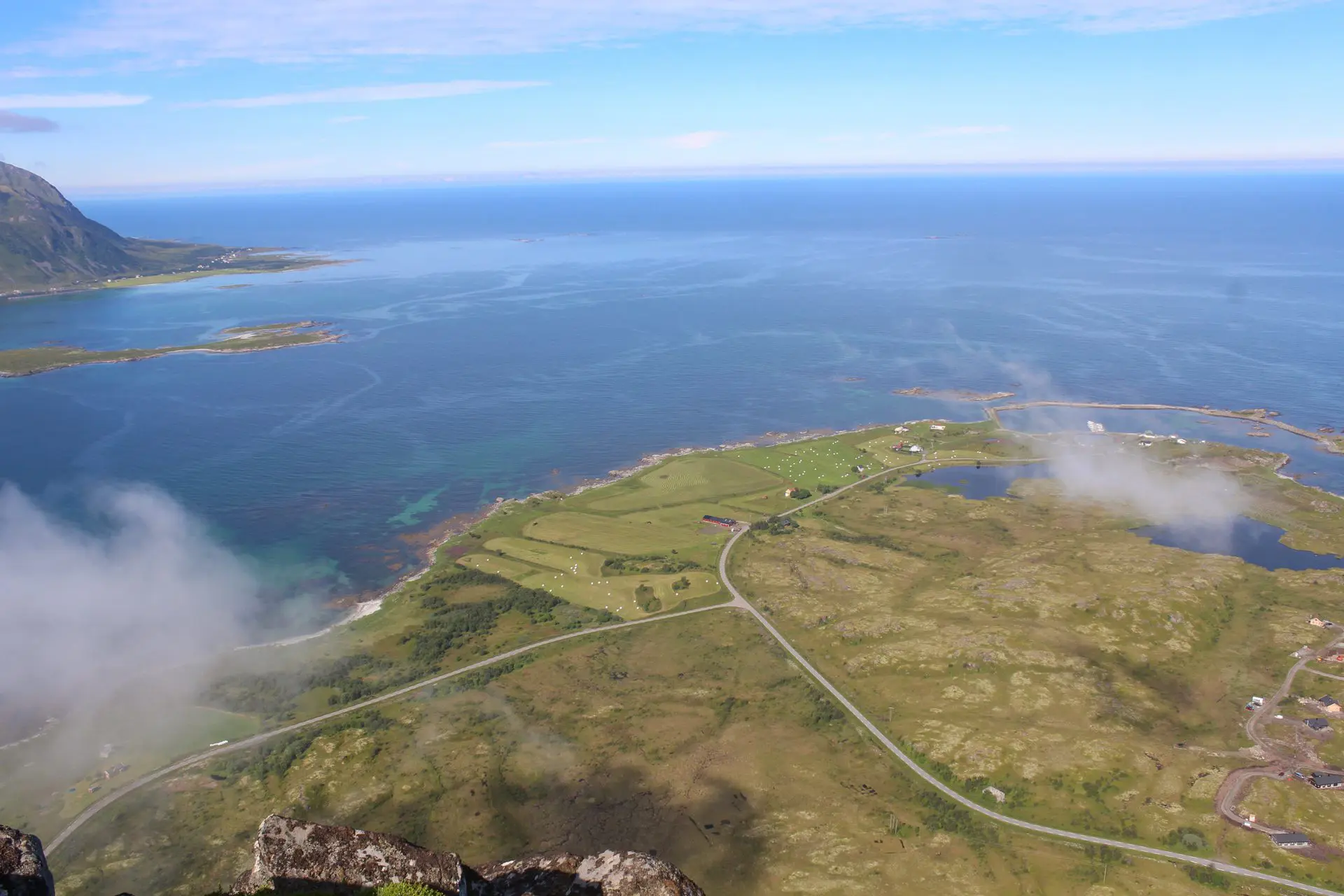 - Le panorama à 360 degrés depuis le sommet, offrant des vues sur l'île de Gimsøya, la baie de Vikspollen, les côtes ouest de l'île d'Austvågøya et même les îles Vesterålen par temps clair.
