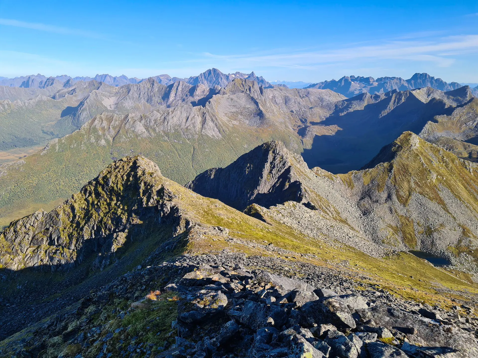 Cet itinéraire est une magnifique randonnée traversante située au nord de l'île d'Austvågøya, dans l'archipel des Lofoten. L'ascension du sommet de Matmora (787 mètres) révèle des panoramas exceptionnels sur le fjord de Grunnførfjorden et dévoile un paysage minéral saisissant au sommet.