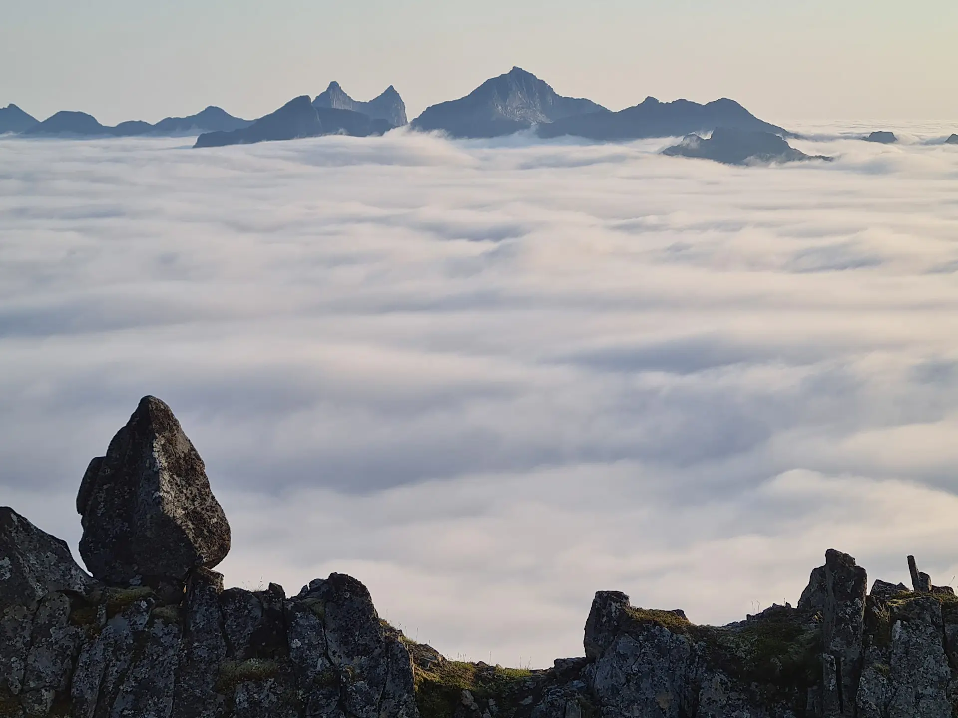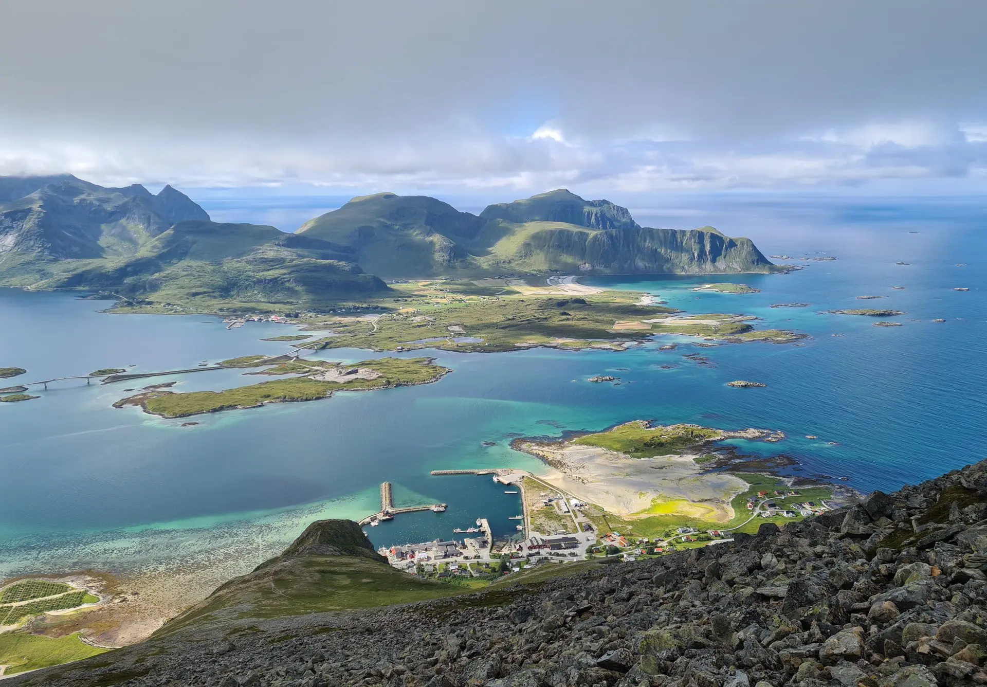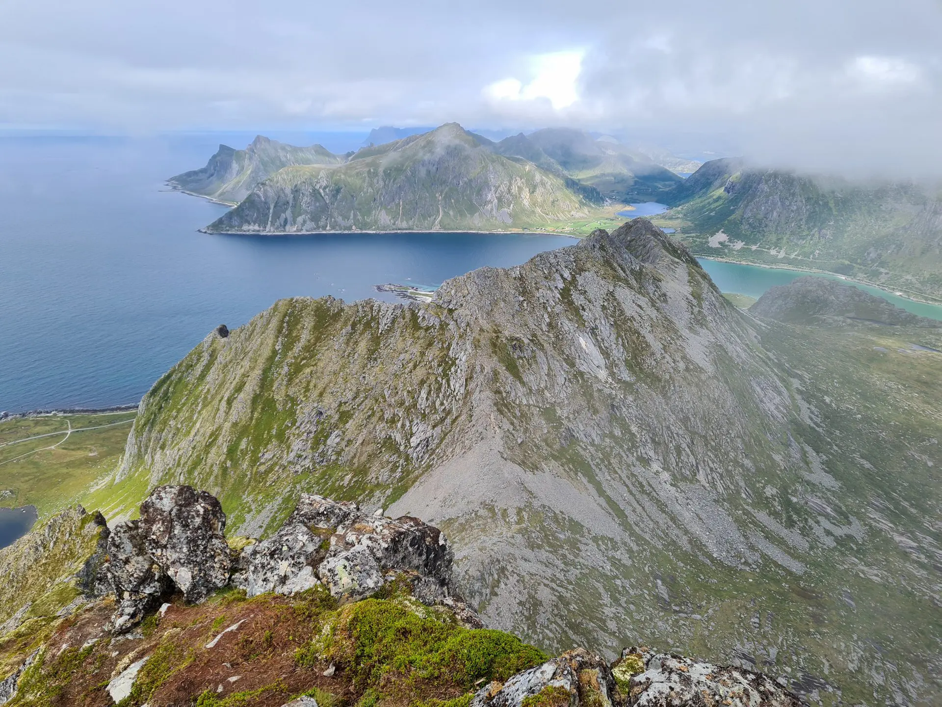 - La vue imprenable depuis le sommet, avec la découverte de la baie de Flakstadpollen et des majestueuses montagnes de Flakstadøya. Au sud, admirez la crête et les impressionnantes falaises de Stortinden.