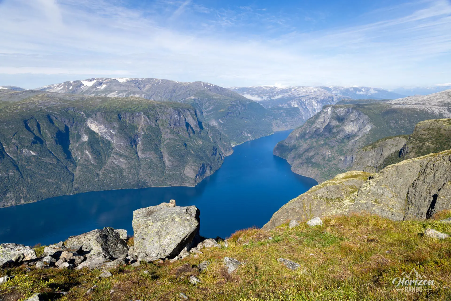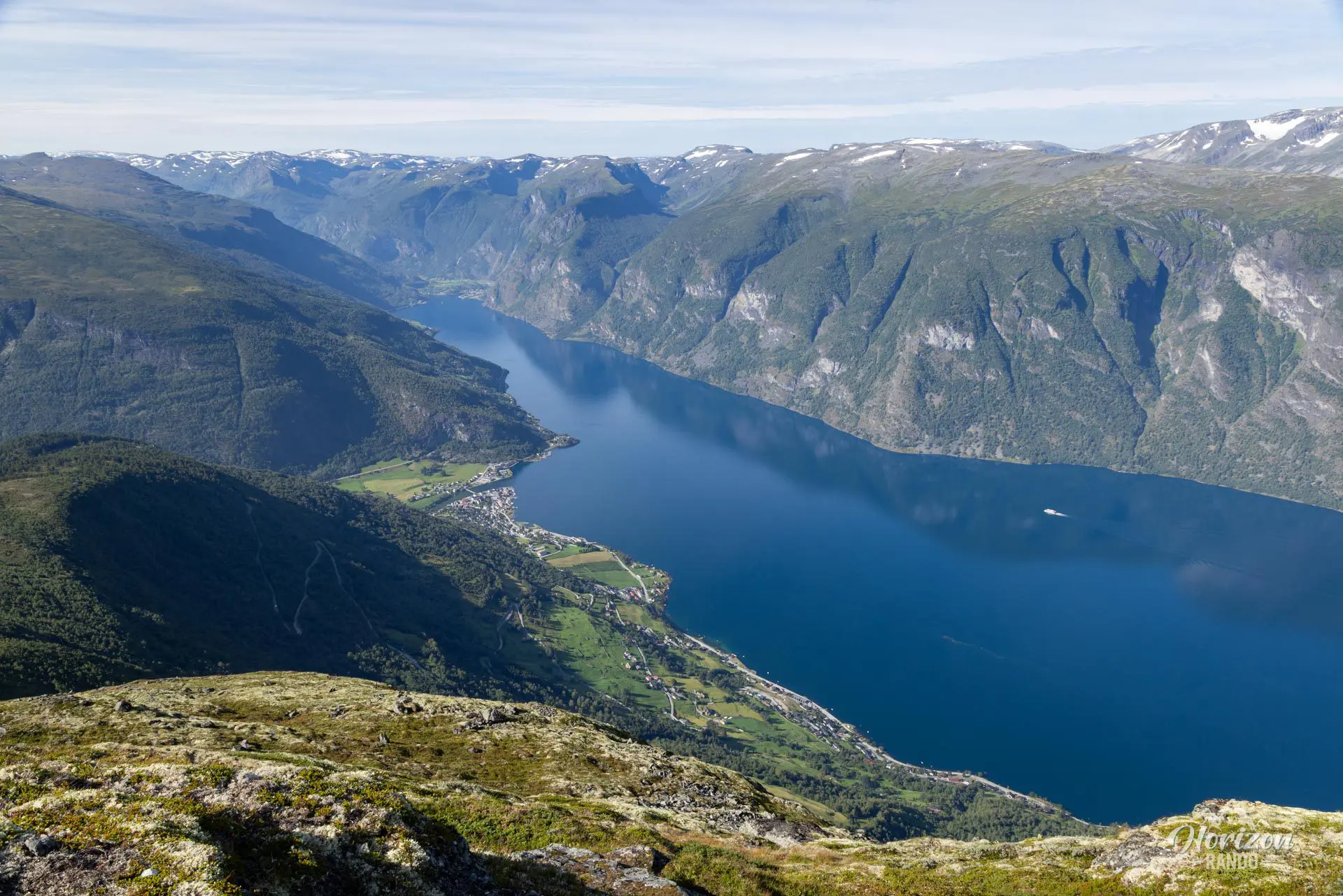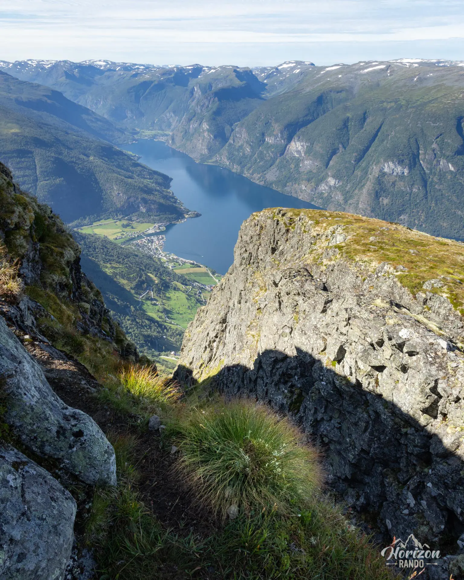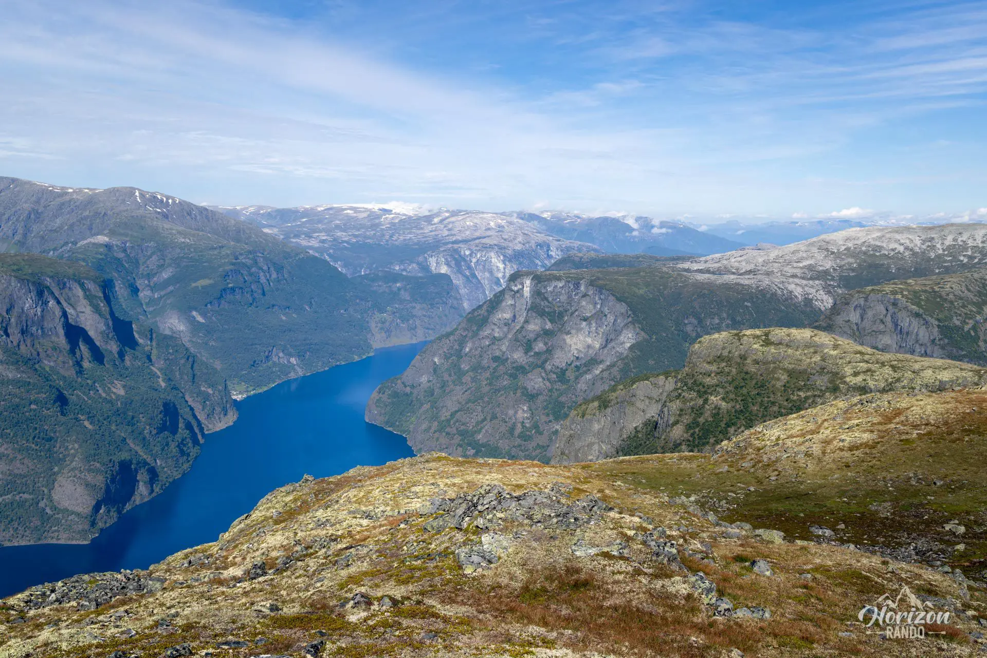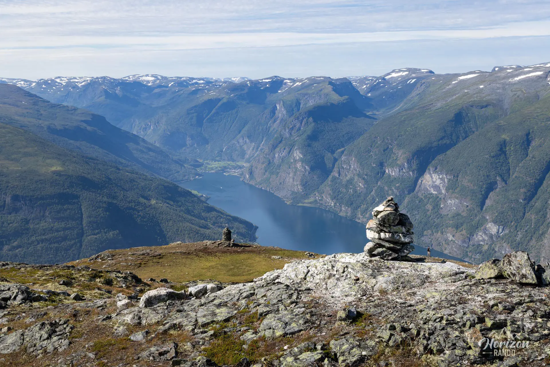 - Des panoramas spectaculares tout au long de l’ascension, avec des vues plongeantes sur l’Aurlandsfjord, le village d'Aurlandsvangen et les sommets environnants.