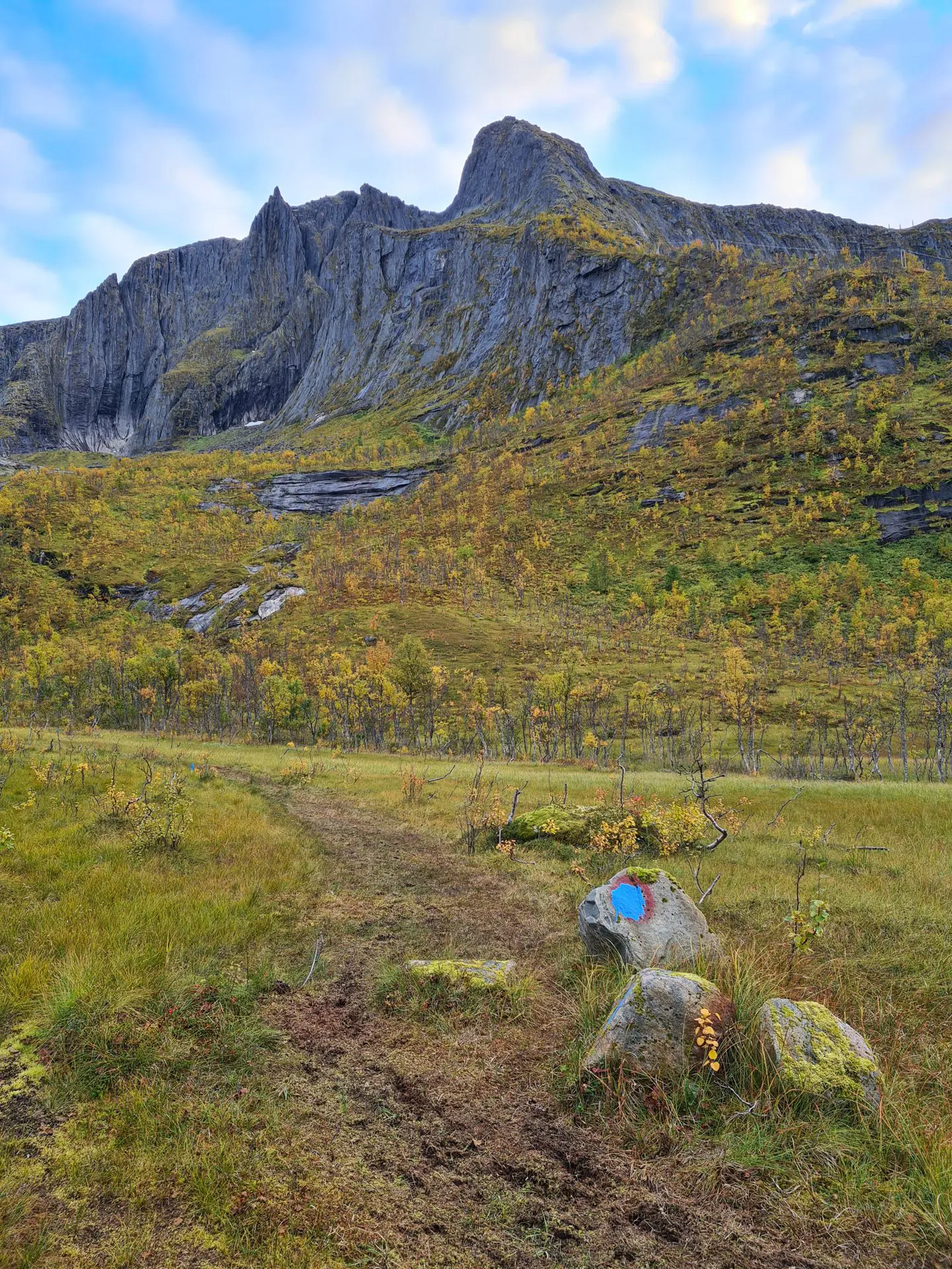 Comme souvent sur l'ile de Senja, le sentier est bien visible et parfaitement balisé, ce qui rend l’orientation facile. Aucune difficulté technique majeure n’est à signaler. Dès les premiers mètres, on traverse une zone marécageuse : des chaussures imperméables sont donc recommandées pour garder les pieds au sec.