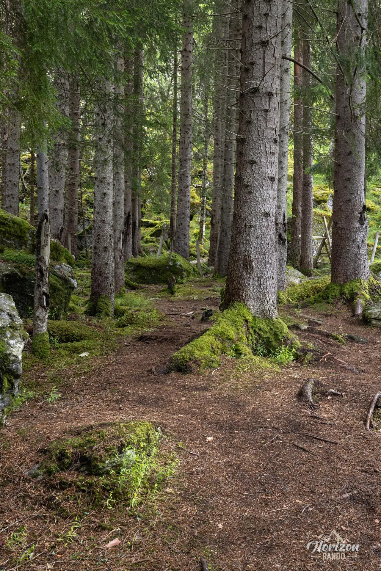 Comme souvent en Norvège, l’itinéraire débute au niveau de la mer. Le sentier grimpe d’abord à travers une forêt de pins, puis de bouleaux, avant de s’ouvrir progressivement aux alentours de 400 à 500 mètres d’altitude — environ à mi-parcours.