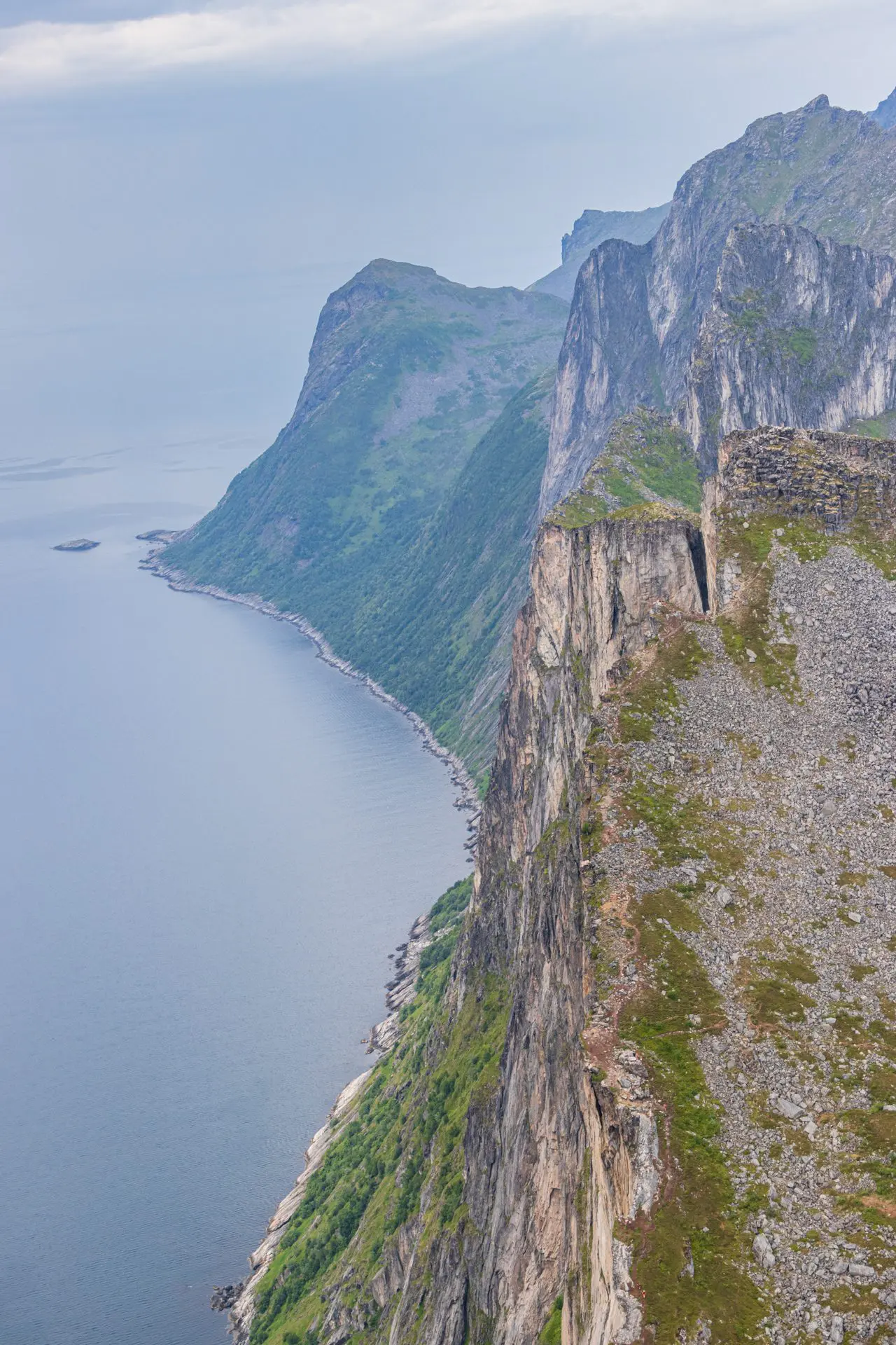 Point de vue iconique : Pour obtenir la vue emblématique de Segla avec ses falaises spectaculaires, il faut gravir le sommet voisin de Hesten.