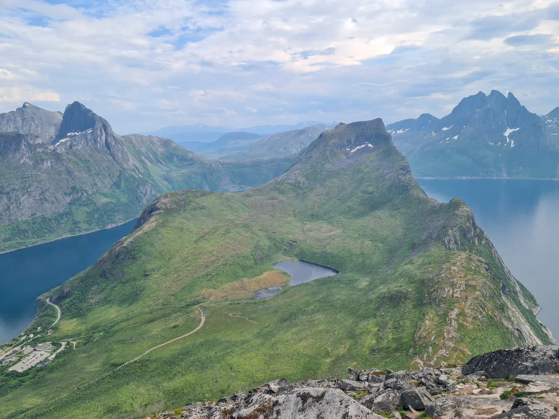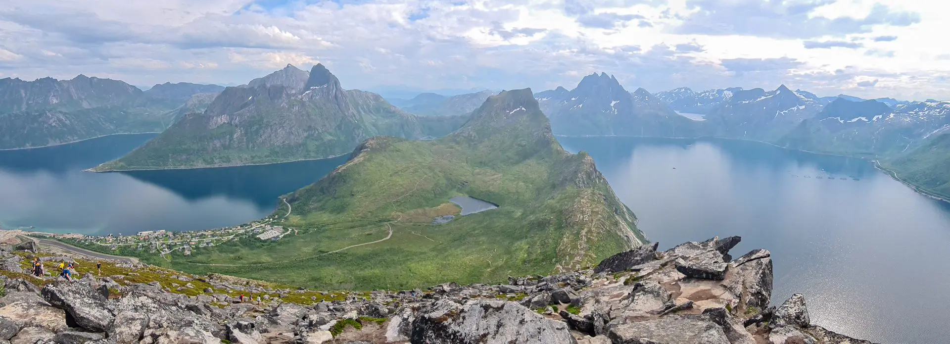 - Vue panoramique exceptionnelle : Une fois au sommet, vous pourrez profiter d'une vue magnifique sur le nord de l'ile, embrassant les fjords de Mefjorden, Øyfjorden, ainsi que les sommets escarpés typiques de Senja.