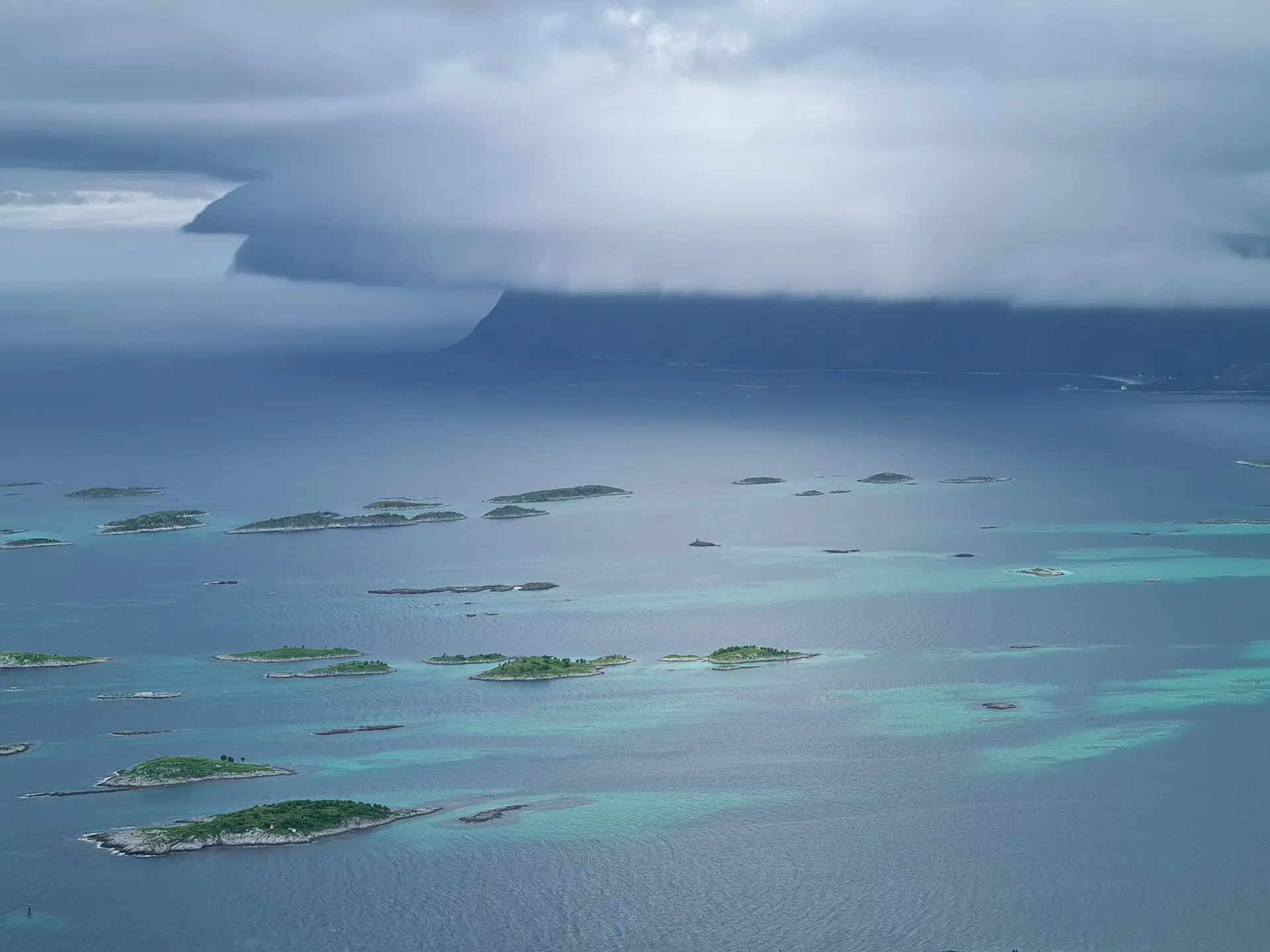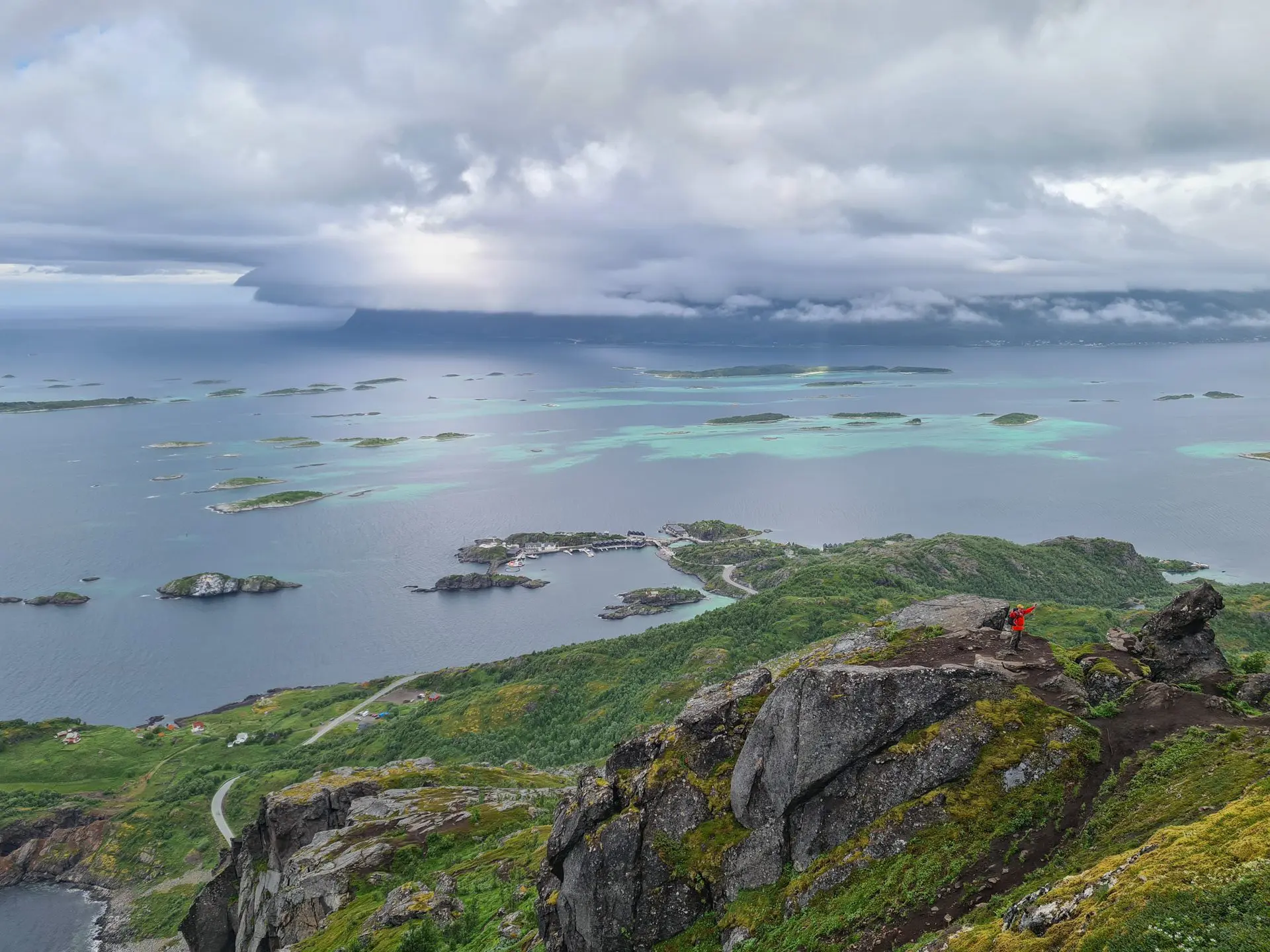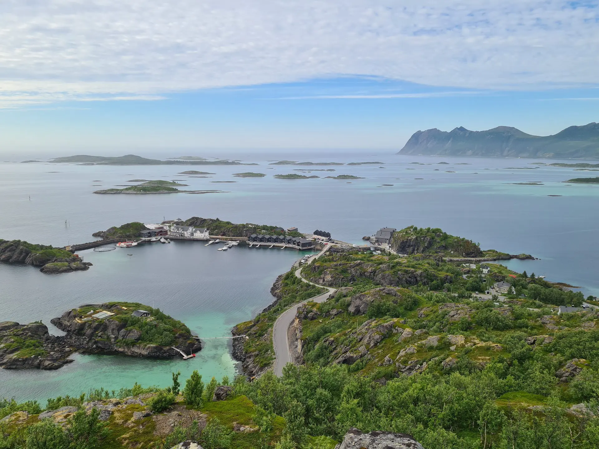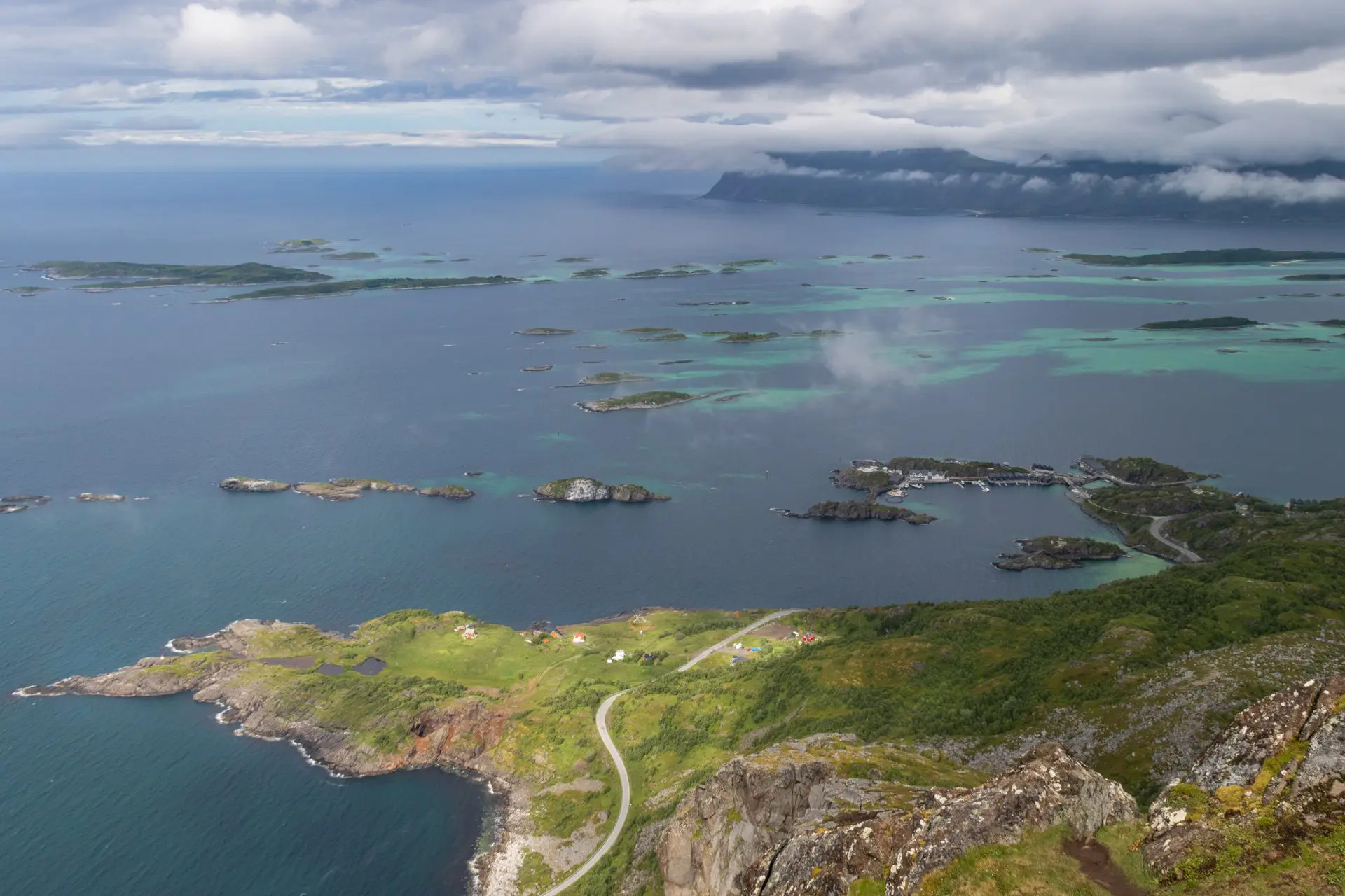 Dominant le charmant village de Hamn, la randonnée de Sukkertoppen offre une véritable immersion dans les paysages sauvages de l'île de Senja, en Norvège. Cette ascension dévoile des panoramas époustouflants sur la multitude d'îlots de Bergsforden, révélant une palette de couleurs éblouissante par beau temps.
