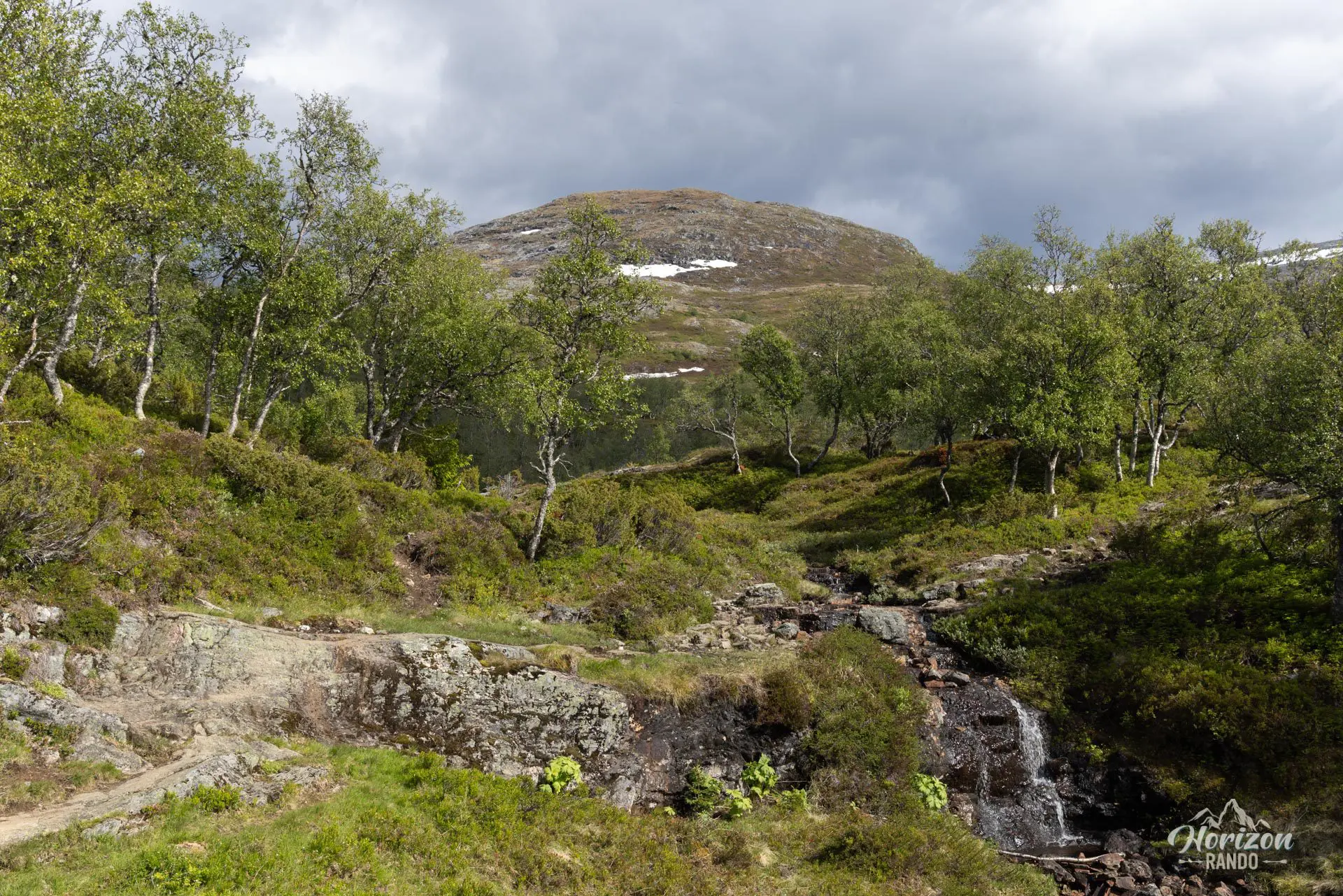 Comme souvent en Norvège, le sentier traverse d’abord une forêt de pins, puis de bouleaux, avant de s’ouvrir sur des paysages dégagés et rocheux. Le balisage est généralement correct, mais restez vigilant, car certaines marques peuvent être discrètes ou espacées, demandant une attention particulière par moments.